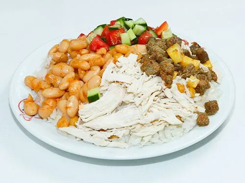 Tavuk, nohut ve fasulyenin buluştuğu tam karışık pilav.